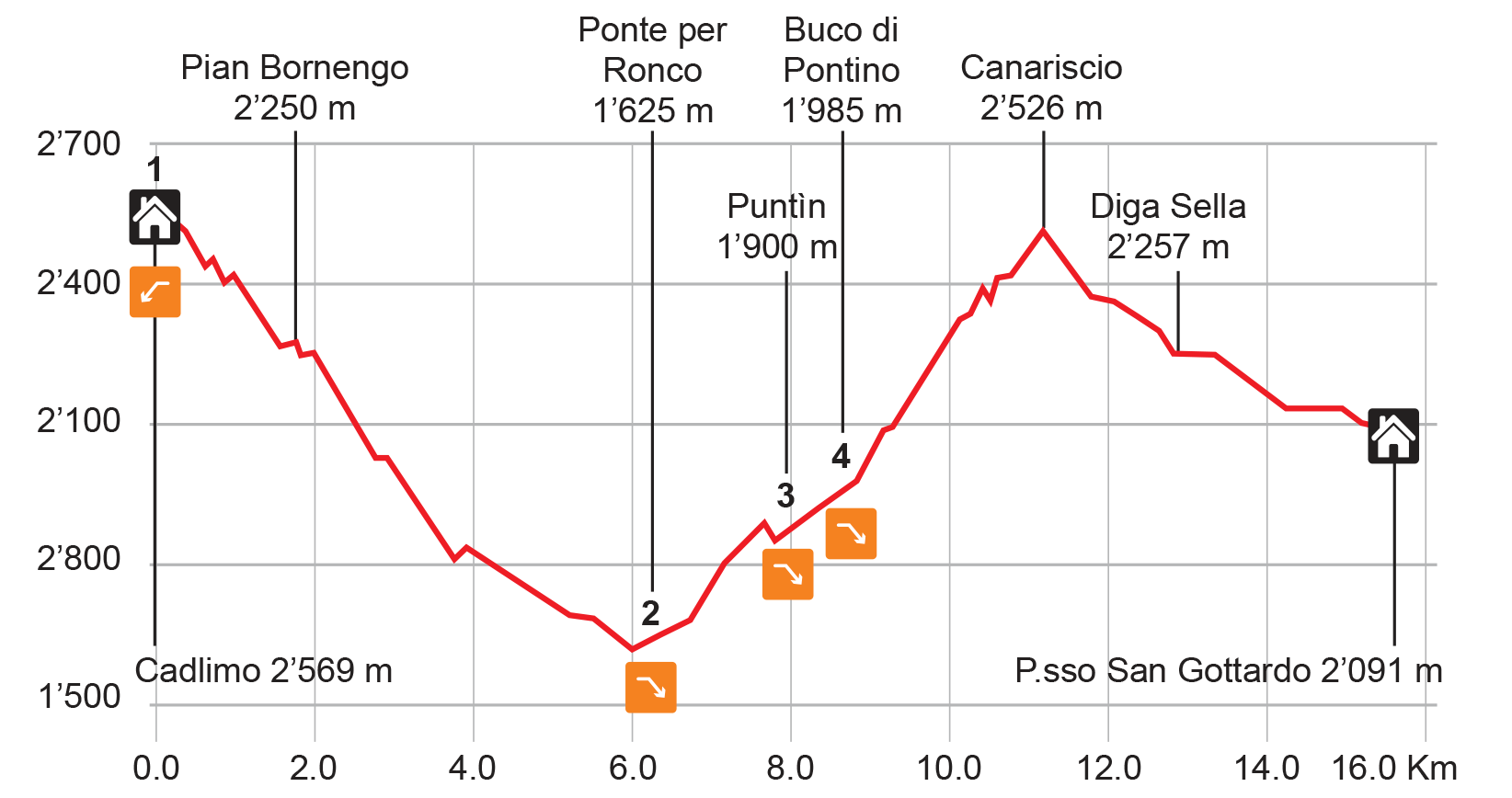Dalla capanna custodita più alta del Ticino si scende nella selvaggia e impervia Val Canaria, ma è solo una “toccata e fuga”, utile per ritrovare larici e pini. Ben presto si sale di nuovo alla quota che si mantiene sino al Passo più storico della Svizzera, caratterizzato dal lento moto delle pale eoliche e dalla magia del luogo.